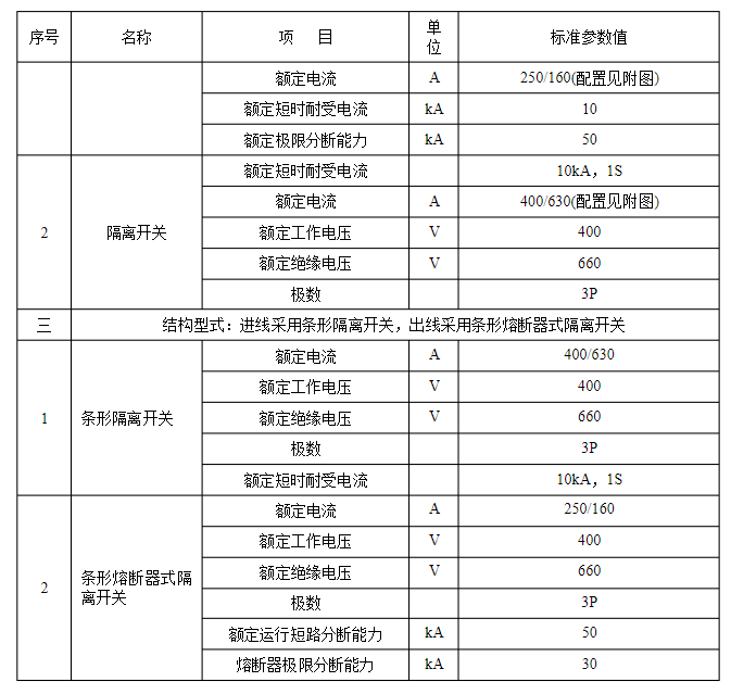 2.3.11在使用中可以互換的具有同樣額定值和結構的組件,應具有互換性。?3?規范技術參數?技術參數特性表是對收購設備的基礎技術參數要求,供貨方應對技術參數特性表中規范參數值進行呼應。低壓電纜分支箱技術參數特性見表3
