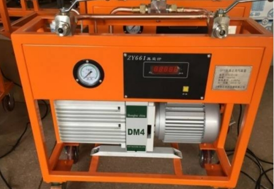 4)最有用最專業(yè)的辦法,是SF6抽真空補氣設備,單級旋片泵極限真空度能夠到達10Pa,雙級旋片泵理論極限真空度可到達6.2*10-4pa,但是流量不大于100m3/h;