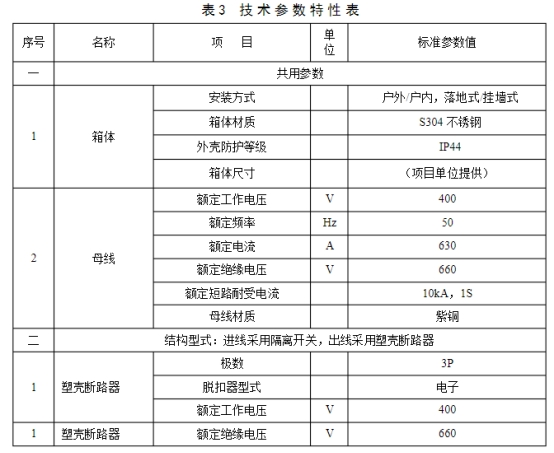 2.1低壓電纜分支箱技術參數低壓電纜分支箱技術參數見技術規范專用部分的技術參數特性表。