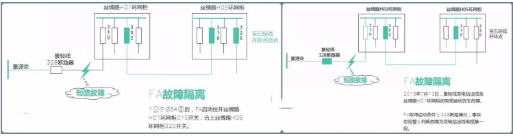 線路故障引起跳閘后,主站根據(jù)終端遙測(cè)信號(hào)判斷故障區(qū)域并自動(dòng)隔離故障。